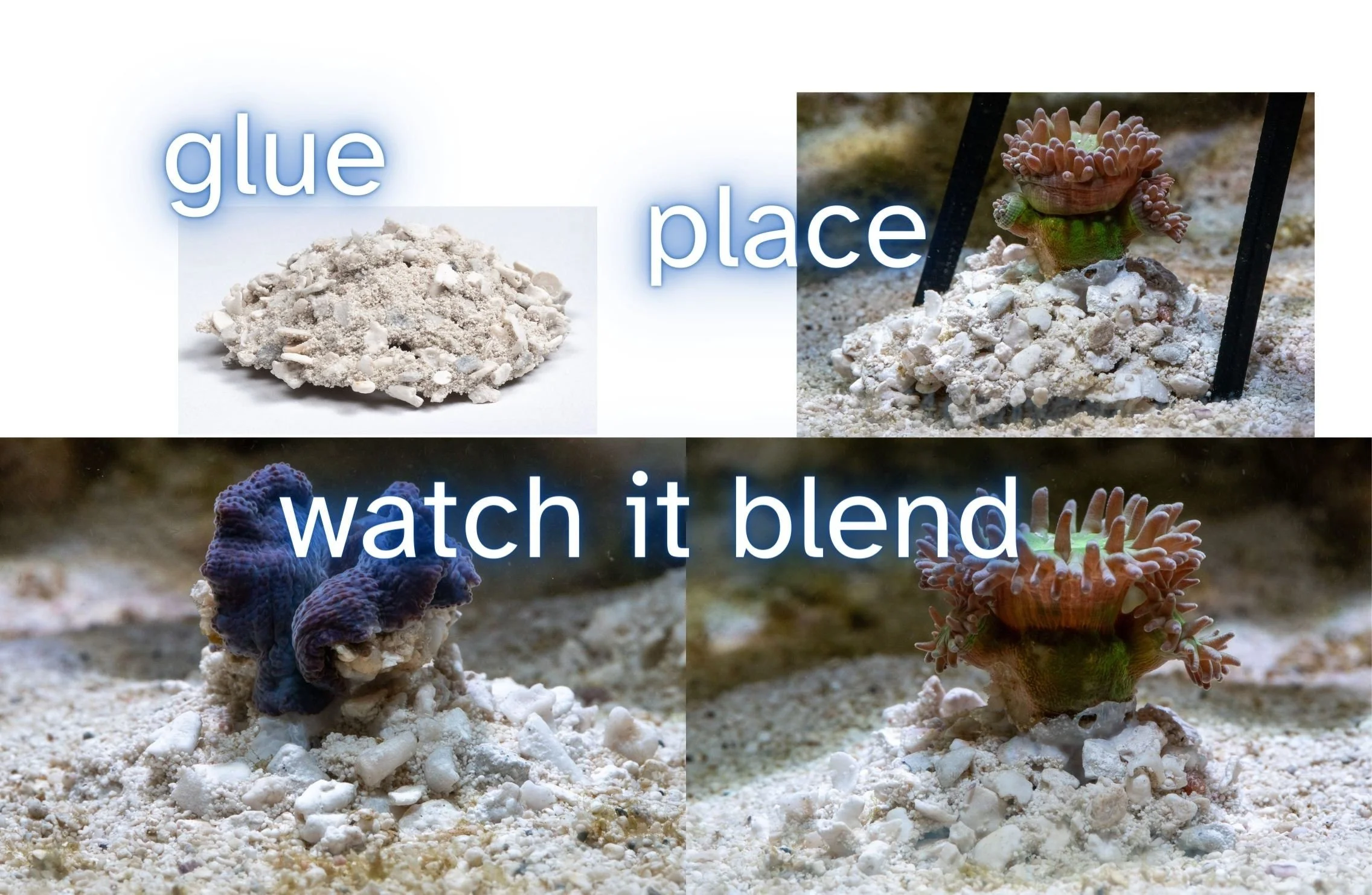 Crafted from a special blend of aquarium-safe sands bound with superglue, each dome promises to merge seamlessly with your tank’s substrate. Imagine a perfect, natural-looking bed for your frags that’s as functional as it is beautiful.